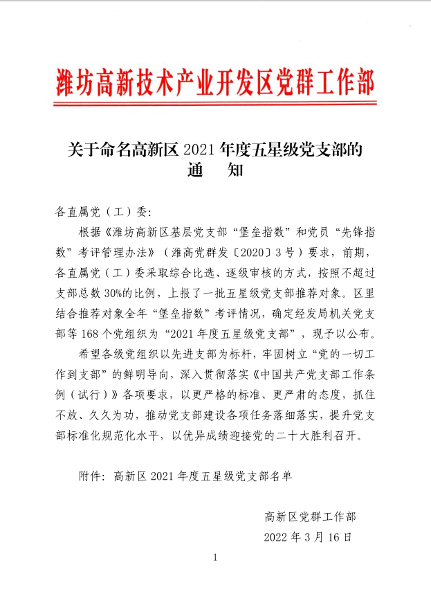 集團(tuán)公司黨支部獲評“高新區(qū)2021年度五星級黨支部”